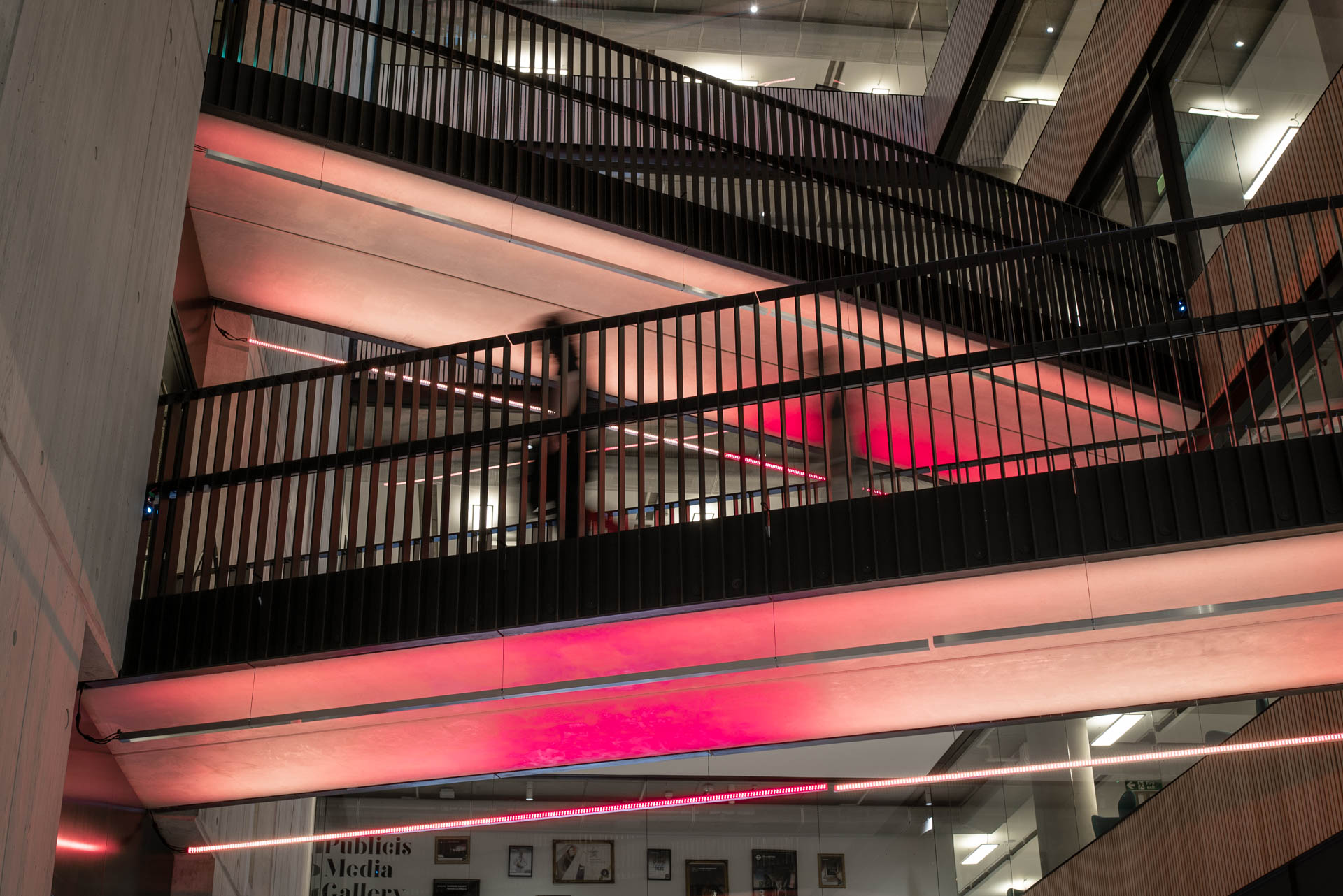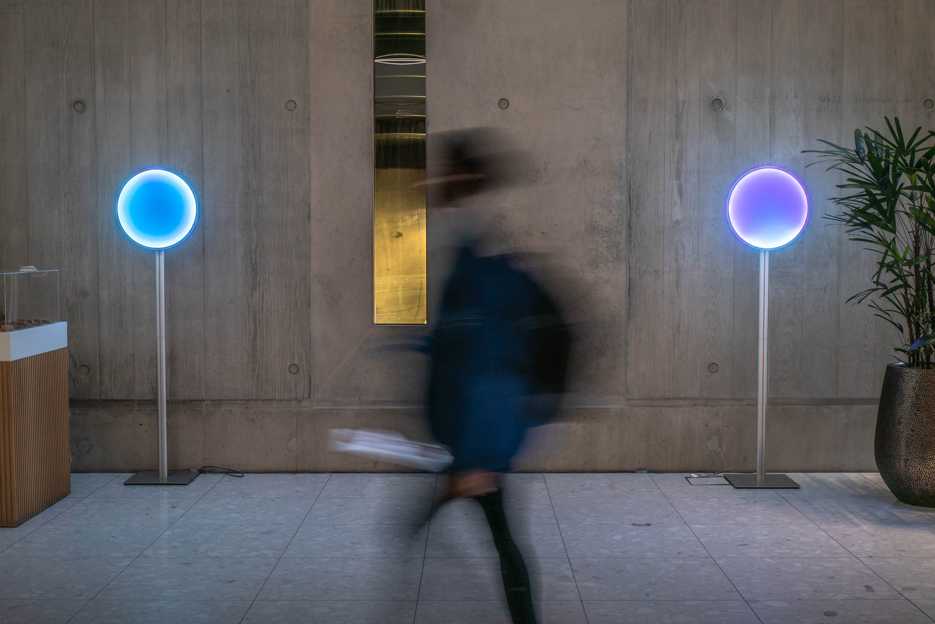 Observe your impact on the space as each interaction creates a “trace”, dynamically shaping the environment in real time. Sensors (within the Beacons on the ground floor) capture the subtlety of your individual presence, blending it with the collective flow and density to create a shared experience. Colour and gradients throughout the entire installation softly illuminate and intensify, reflecting the energy of the space and supporting the Television Centre’s identity as a "creative hub" of human and architectural connection.